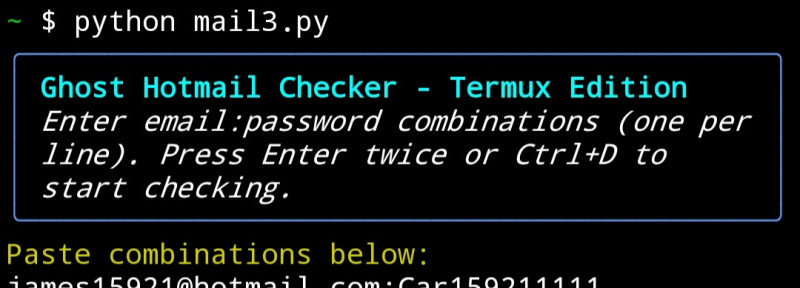 Ultra-fast Hotmail/Outlook/Live checker - Proxyless + Proxy support - Checks: LIVE | DEAD | NFA | CUSTOM | UNKNOWN - Multi-keyword inbox search (PayPal, balance, bitcoin, login, etc.) - Saves detailed hits + inbox snippets - Real-time stats & auto-log files - 1000+ CPM on good setup Instant download after payment. Lifetime license. For research/educational use only.